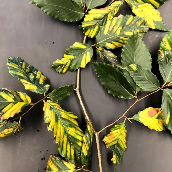 Vernon, VT - Beech leaf disease (BLD), caused by the invasive nematode or roundworm Litylenchus crenatae mccannii, has been confirmed for the first time in Vermont. After receiving a report of potential BLD in southeastern Vermont, staff from the Forest Health program of the Department of Forests, Parks, and Recreation (FPR) collected symptomatic leaves from American beech (Fagus grandifolia) saplings. Samples were sent to a US Department of Agriculture Forest Service Laboratory for DNA confirmation in early October 2023, and BLD has now been officially confirmed within the state.