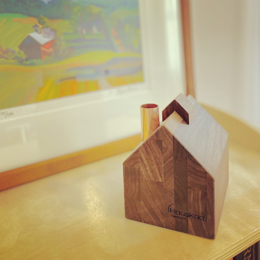 The newest member of the Vermont Woodworks Council is Hauskaa. Based in Burke, Hauskaa is a maker of little wooden houses for fun, form, and function. Hauskaa’s handcrafted houses can serve as candleholders, keepsakes, conversations pieces, collectibles, or part of a design-forward Nordic village as a Christmas-time decoration. Pieces come in unique, modern designs that are a take on classic architectural styles such as barn, Colonial, farmhouse, and many more. All of Hauskaa’s pieces are made from upcycled wood from the scraps of local furniture makers.